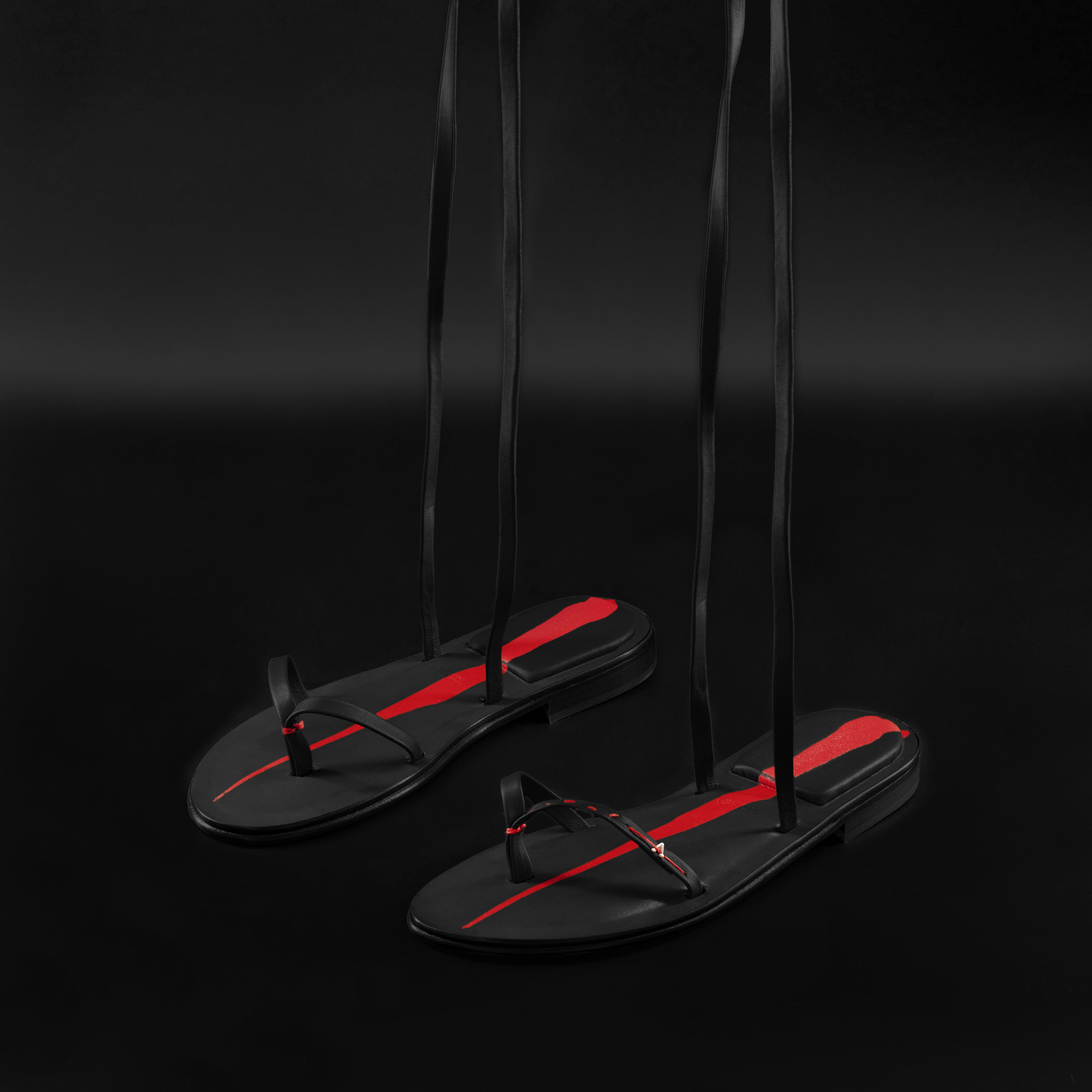 Sandali a infradito alla schiava, con altezza delle fasce in pelle fino alla coscia. Realizzati interamente a mano dai nostri artigiani italiani senza l'uso di macchinari. Ogni cucitura è ricamata solo con ago e filo, proprio come si faceva una volta ed i materiali selezionati sono di primissima scelta.