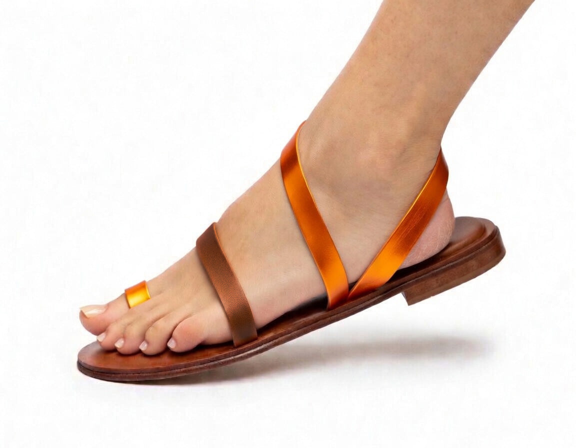 Sandali alla greca con tre fasce di pelle da 15 mm. Suola in vero cuoio comfort imbottita con gommapiuma, con l'aggiunta nella zona tallone di una comoda tallonetta in extra-light rivestita in pelle. Antiscivolo anteriore in gomma.